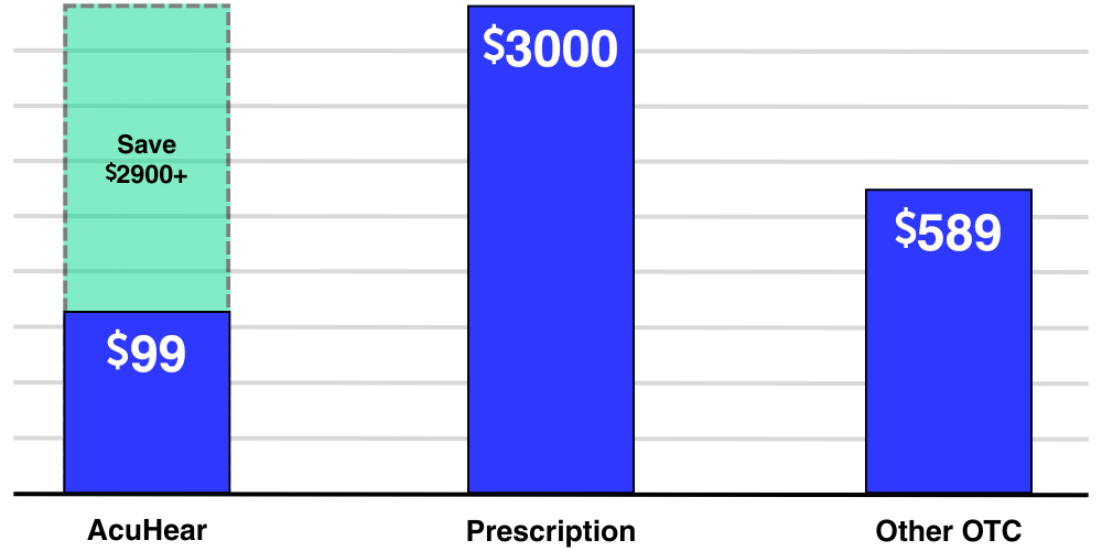 AcuHear doesn’t have all the bells and whistles of $5,000 hearing aids, but we provide all the features you NEED to improve your hearing. And we cost 95% less than prescription hearing aids. Our products work for 10,000+ customers and if you don’t like them, you can return them to try prescription devices!